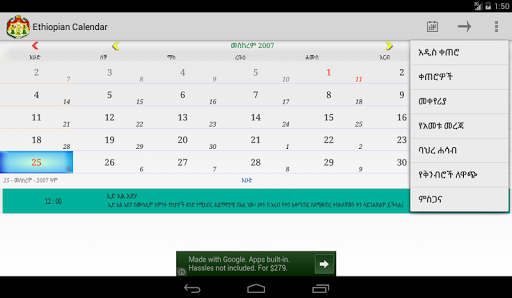 Ethiopian Calendar (Habesha Calendar) app is the best app with many amazing features like:- Date Converter, Remainder & Alarm, Todo-List, Ethiopian calendar widget with a small app size and with the best ui design. – Fast Date Converter from Gregorian to Ethiopian Calendar. – Easy to navigate from year to year and from month to.