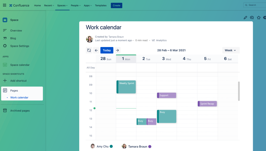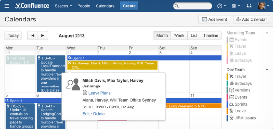 Confluence team calendar documentation