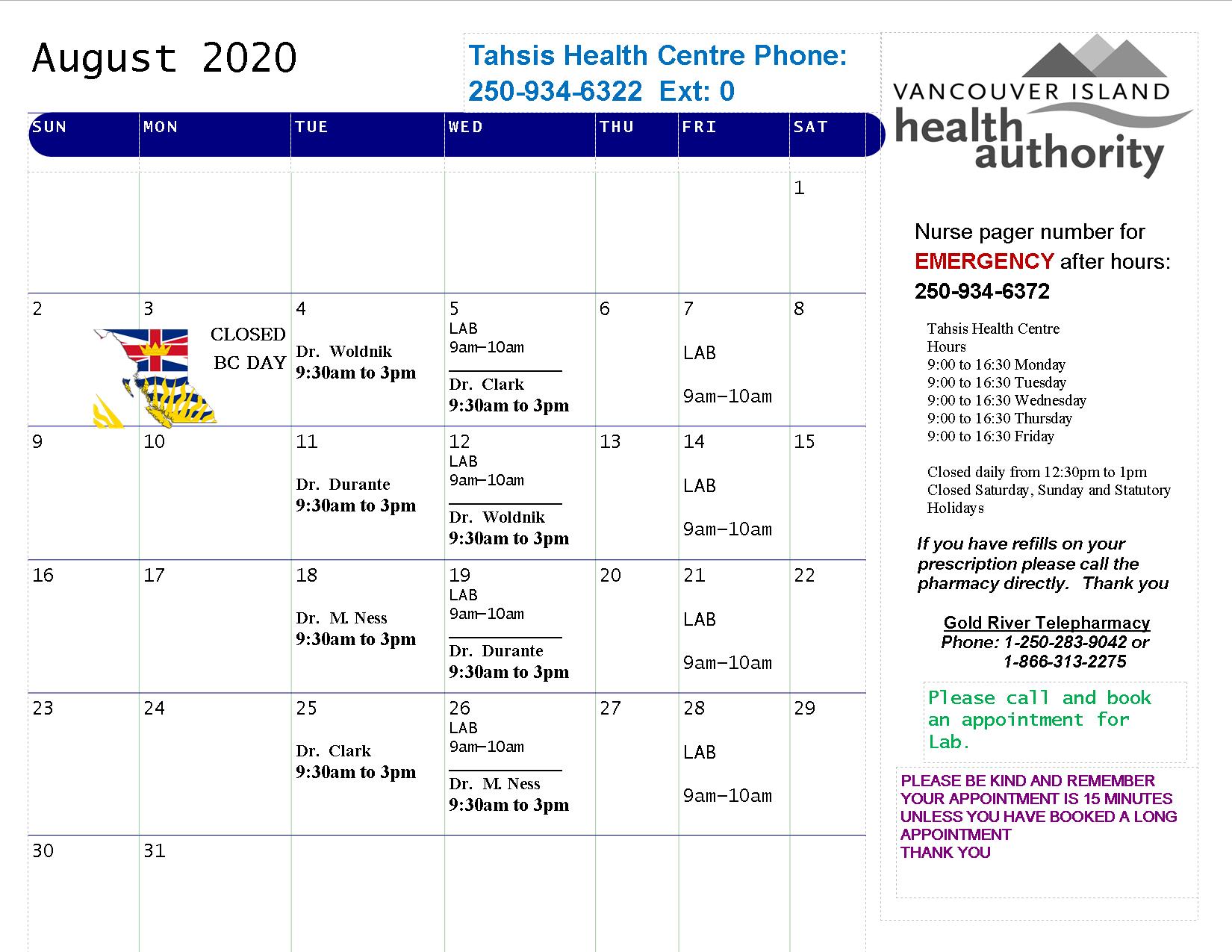 August Health Calendar 2024.